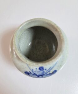 23. 고미술품 조선시대 후기 청화백자 괴석의난문호 댓글 달기 / 글쓴이 leedo.co.kr / 31 7월 2023 조선시대 19세기 관요사기 청화백자 괴석난초문 호 경기도 광주 분원에서 만들어진 관요사기입니다 제원은 높이 9cm 구연부 7cm 구연부 튐 수리 한군데와 빙렬성 실유 한군데가 있습니다 판매가 20만원