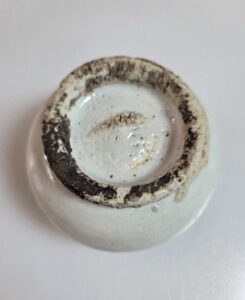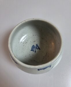 이 기물은 조선 후기 지방에서 제작된 청화백자 오목다완