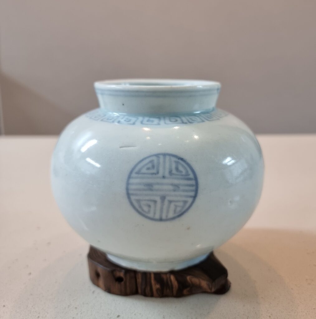 20. 대구골동품 19세기 청화백자 수자문호글쓴이 leedo.co.kr / 31 7월 2023 조선시대 19세기 관요사기 청화백자 수자문 호관요 전성기에 만들어진 기물로서 색이 일급입니다.목숨 수 명문도안이 들어갔으며 높이 12cm로서 재원이 좋습니다. 상태는 구연부 미세유 1곳 외 완벽합니다.