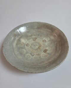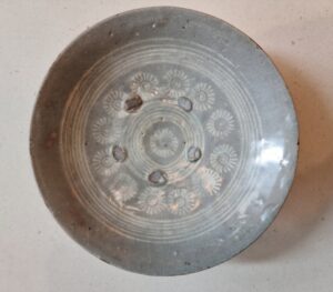 고미술품 조선전기 인화기법으로 제작된 분청사기 백상감 국화문 접시입니다