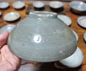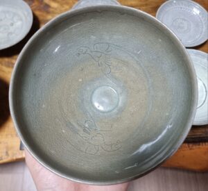 산화소성으로 인해 요변이 들어가있지만 비색청자로서 색이 좋습니다