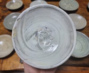 소성 당시 불을 강하게 맞아서 남의 살이 붙고 떨어졌지만 그 대신 유약이 S급으로 나왔습니다