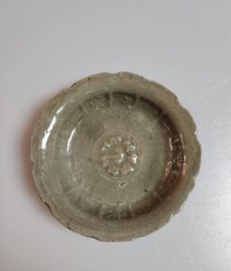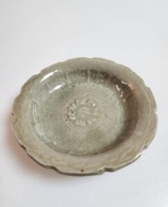 구연부의 전엽 끝을 바깥과 안쪽에서 눌러 편평하게 처리한 뒤, 전 부분을 꽃잎 모양으로 깎아낸 화형접시로 고려시대 기물 가운데서도 장식성이 뛰어납니다