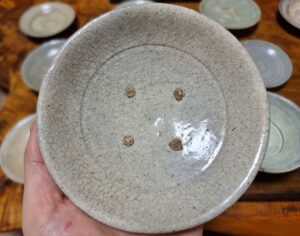 유약만 보면 김해지역으로 볼 수도 있지만 굽 받침 흔 등을 볼때 웅천 옆 하동지역으로 보입니다