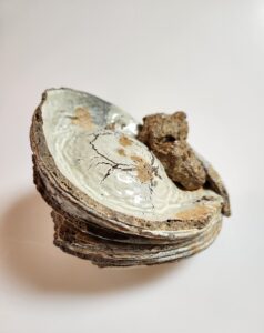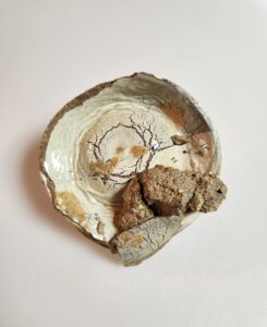 상단에는 소성 중 떨어진 가마똥이 있는데 그 틈 사이를 활용해 향꽂이로도 사용 할 수도 있어서 재미가 있습니다
