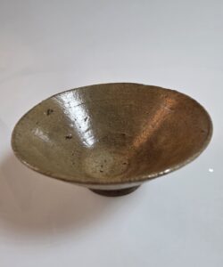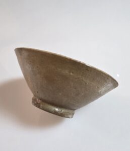 이 다완은 고려 전기에 제작된 황청자 다완으로 정제된 태토로 수비가 잘 이루어져 기물의 표면이 매끈하고 안정감 있는 형태를 보여줍니다