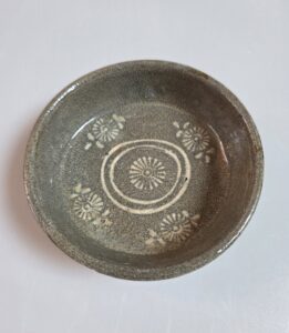 14세기 려말선초에 만들어진 분청 인화 백상감 국화문 종지