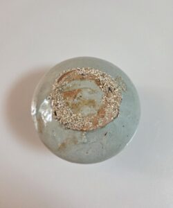 평굽에 굵은 모래받침을 사용하여 번조하였는데 굽 바닥까지 유약이 시유가 되었습니다