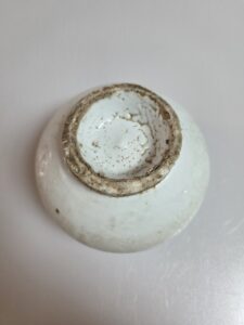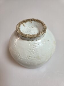 모래받침으로 번조하였고 굽 바닥에는 유약이 뭉쳐서 가이라기가 살짝 피어있습니다