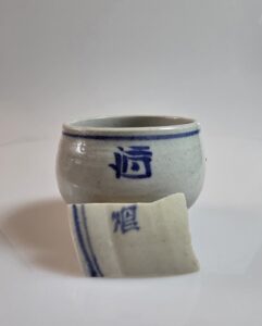 209. 고도갤러리 골동품 조선후기 분원 관요사기 청화백자 주(酒)자문 오목잔