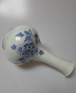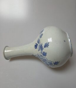 조선시대 후기 경기도 광주 분원에서 제작된 관요사기 모란박쥐문 주병입니다