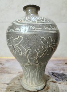 조선시대 초기 분청사기 흑백상감 연류문 매병