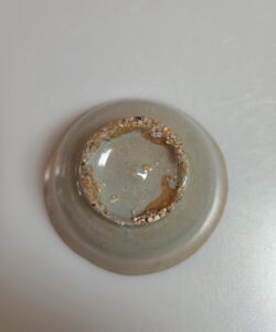 굵은 모래받침으로 번조를 하였고 굽 접지면 안쪽까지 유약이 시유되었습니다