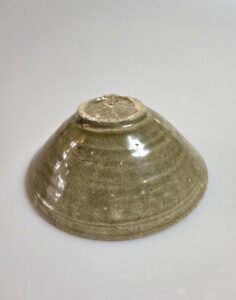 이 다완은 고려 전기에 제작된 황청자 다완으로 정제된 태토로 수비가 잘 이루어져 기물의 표면이 매끈하고 안정감 있는 형태를 보여줍니다