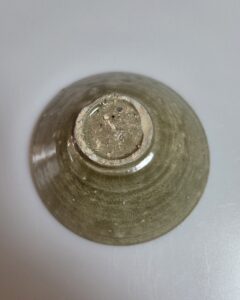 굽은 내화토 받침으로 번조하였고 제원은 구연부 14cm, 높이 5.2cm로, 일인용 다완으로 알맞은 크기입니다