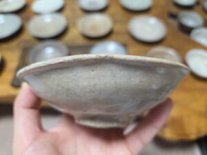 조선시대 초기 경남지역에서 만들어진 조선백자 평접시입니다