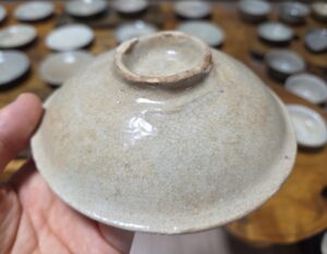 굽 안쪽까지 유약이 시유되었고 내화토받침으로 번조하였습니다