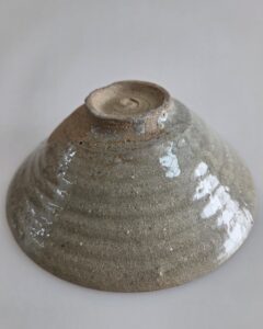 기물은 얇고 평형하며 치마처럼 퍼지는 형태를 지녔고 내저부 중심부에는 교맥다완의 요소를 띠는 구조가 보입니다