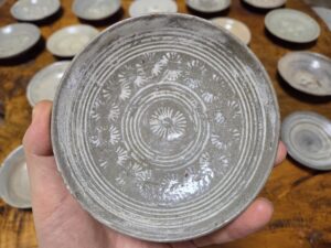 고미술품 조선전기 인화기법으로 제작된 분청사기 백상감 국화문 접시입니다