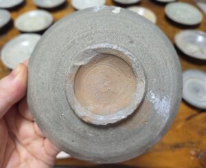 내저부는 평평하고 안정감 있는 낮은 굽이 조화를 이루고 있습니다.