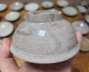 옅은 비파색으로 연질태토에 크고 작은 빙렬사이로 땟물이 스며들어 고태미가 좋습니다