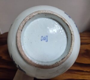 어깨에 여의두문과 특히 굽에는 ‘洞’ 자 명문이 청화로 들어갔습니다