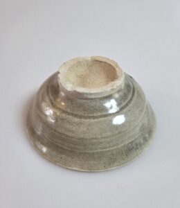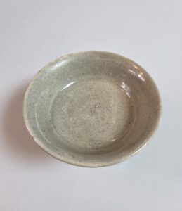 은은한 비색이 도는 이 잔은 조선 전기에 제작된 조선청자잔으로 정제된 태토로 수비가 잘 이루어져 기물의 표면이 매끈하고 안정감 있는 형태를 보여줍니다