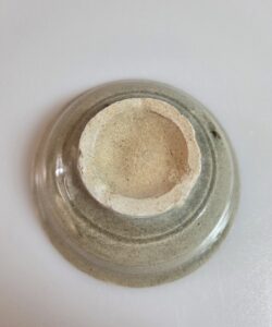 굽 저부에는 선문이 한줄 들어갔으며 굽 바닥에는 유약이 시유되지 않은게 전형적인 조선청자 특징입니다