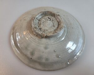 조선청자의 특징을 잘 보여주며, 내저부는 평평하고 중앙 차고임 자리만 아주 얕게 오목하게 처리하여 잔을 올려놓으면 좋습니다