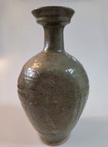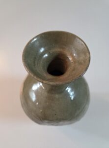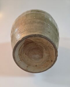 보통 고려시대 전기 광구병은 황청자 계열이 많은데, 본 기물은 탁한 비색을 띠며, 유약, 색 모두 좋습니다