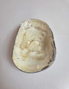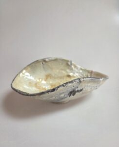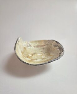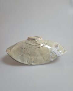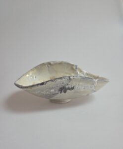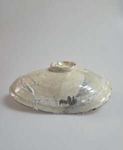 넓게 펼쳐진 구연은 마치 부채를 펼쳐 놓은 듯한 실루엣을 이루며, 소성 과정에서 불의 영향으로 자연스럽게 일그러진 비대칭 형태 속에서 깊은 와비사비적 멋을 지니고 있습니다