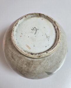 이 기물의 특징은 굽 접지면 안쪽으로 분(分)자를 시문하였고 분원 해체 후에는 물수변이 추가되어서 분원 해체 후 관요도자의 역사를 알 수 있는 기물입니다