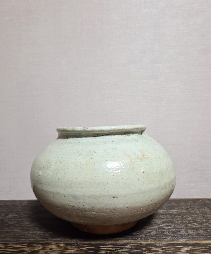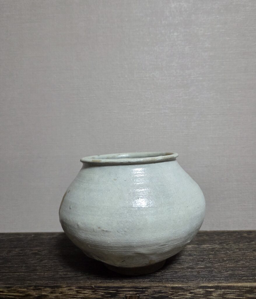 조선시대 전기에서 중기로 넘어가는 시기에 제작된 관요사기 호입니다 짧고 벌어진 구연부, 풍만한 동체, 상대적으로 좁은 저부를 가지고 있습니다 조형미가 좋으며 장식 없이 순수한 형태미를 지니고 있습니다 태토는 비교적 정제도가 높고 치밀하여 수비가 잘되었습니다 내부 역시 유약이 고르게 시유되어 차호로 실사용하기 좋습니다 안정감 있는 관요굽으로 가는 모래받침으로 번조하였습니다 회백색 바탕위에 산화소성과 요변으로 인한 색상 변화와 유약의 …