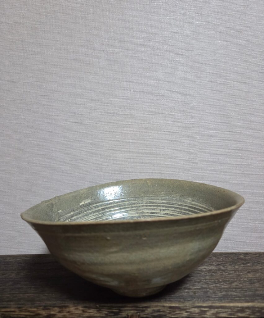 이 기물은 조선전기 분청사기 귀얄 선문 발입니다 내면에 선문이 규칙적으로  반복되어 있고 백상감으로 마감을 하였습니다 태토는 회갈색 계열로 다소 거친 입자를 지녔으며 유약 표면에는 빙렬이 매력적입니다 특히 내저부 중앙에 엄지로 누른 듯한 움푹 들어가 있으면서 매끈하게 마무리된 모습은 도공의 의도적인 차고임 자리 형성으로 보입니다 재원 : 구연부 17.3~18.8cm x 높이 8cm 로 찌글어진 형태로서 장식성 …