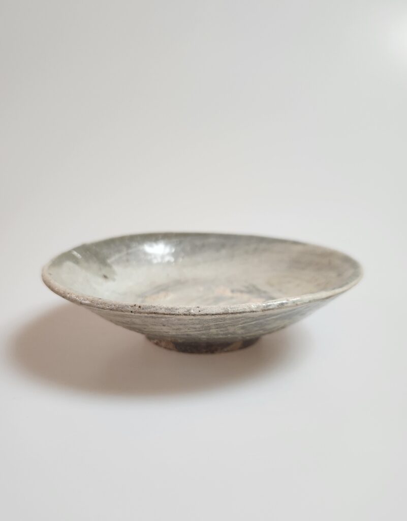 고미술품 조선초기 분청사기 밀양 용전리 귀얄 평잔 귀얄이 안밖 모두 귀얄이 강하게 들어갔으며 특히 내저부 중심 살짝 옆에서 귀얄이 돌아간게  인상적입니다 도공의 손맛을 느낄수 있는 요소로 마치 사람의 쌍가마처럼 보이는게 매력적입니다 특히 성형 건조 후 분을 바를때 도공의 지적이 남아 그 부분만 귀얄이 돌아가지 않는게 이 기물의 감상 포인트입니다 내화토 받침으로 번조하였으며 굽 안쪽까지 …