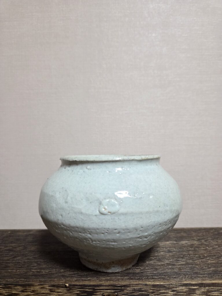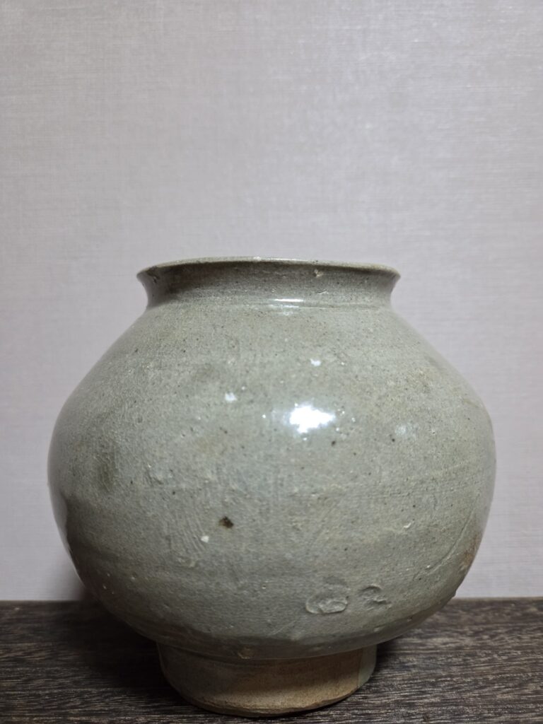 대구 골동품 조선시대 중기에 만들어진 철화백자 호 입니다 어깨 부위를 돌아가면서 전체적으로 철화가 잘 시문되었습니다 약간 주판알 형태로서 일본에서는 소로본가타라고 부르며 인기가 있습니다 굽 저부에는 산기처럼도 보이지만 직접 만져보면 부드럽습니다. 상태는 실유는 없고 구연부 기벽은 다 살아있습니다 다만 밖으로 작은 튐 2군데와 엄지손가락 크기의 제살수리가 있습니다 조선중기 철화백자 호는 희소합니다 재원 높이 9.5cm x 구연부 …
