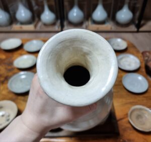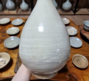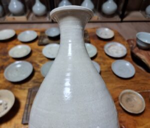 85. 고도갤러리 고미술품 조선초기 조선백자주병 댓글 달기 / 글쓴이 leedo.co.kr / 21 9월 2023 고도갤러리 조선초기 백자 주병 조선초기에 만들어진 주병입니다. 크기 : 높이 33cm x 구연부 8.2cm 로서 대 주병입니다 특히 높이30cm 가 넘는 주병은 희소성이 있습니다 상태완벽하기에 고도갤러리 추천기물입니다