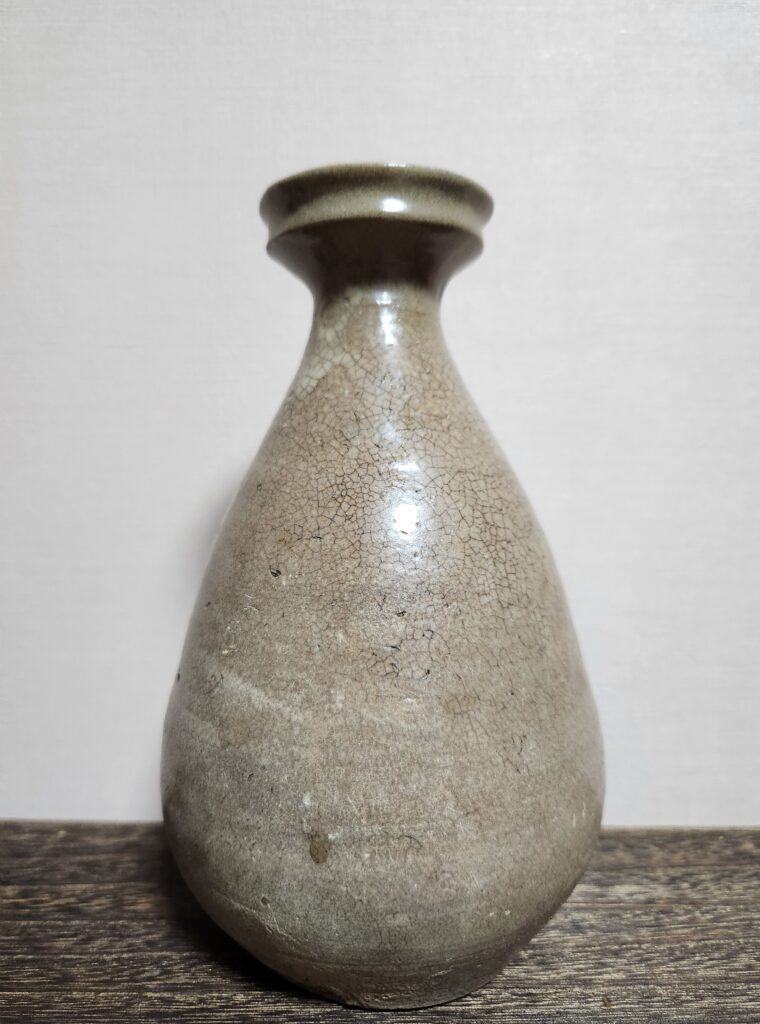 골동품 조선시대 중기병 형태가 어깨가 쳐지면서 허리라인이 넓게 나왔고 굽은 평굽입니다 전체적으로 비파색을 띄고 있으며 이도유약 같은 하얀유약 뭉침이 좋고 흐르는 빙렬 안으로 작은 빙렬이 터져있고 자연스러운 세월의 흔적에 고태미가 좋습니다 연질태토로 웅천지역 인근에서 소성된걸로 보입니다 제원 높이 19.5cm x 구연부 6cm 구연부 고급수리 되어있습니다 고도갤러리 추천 기물입니다 판매가 23만원