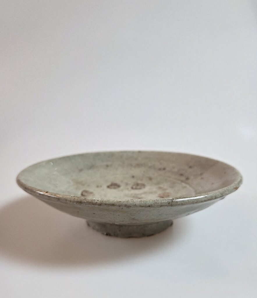 조선시대 초기 전라도지역 분청사기 귀얄 접시 내저부 5군데 모래받침으로 포개쌓기로 구웠습니다 소성 당시 강한 불로 인해 유약이 정말 좋습니다 귀얄 분맛도 두껍고 힘차게 돌아갔습니다 굽은 높고 죽절굽으로 유약은 견수지만 연질태토로 사용할 수록 차심이 자연스럽게 스며들것입니다 재원 넓이 13.4cm 높이 3.4cm 유 튐 수리없이 상태완벽하기에 고도갤러리 추천 기물입니다