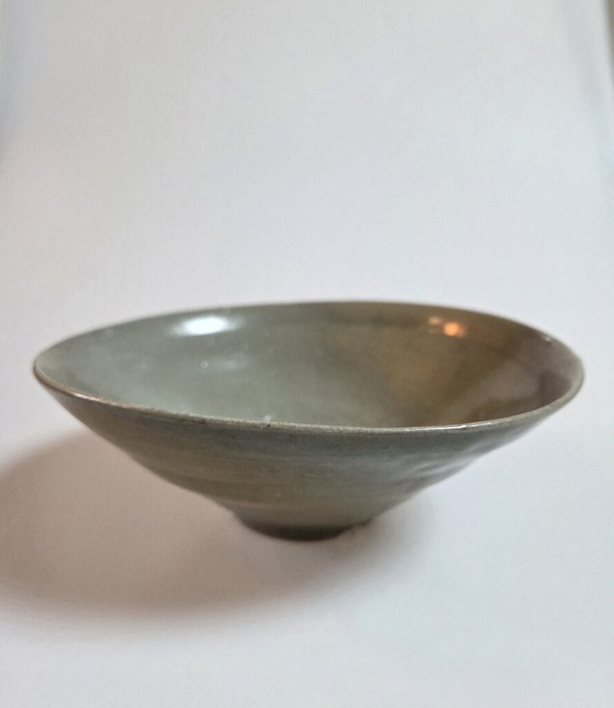 고려시대 전기에 제작된 고려청자다완 태토는 비교적 정제도가 높고 치밀하여 수비가 잘되었고 소성 과정에서 불길을 잘 받아 자화가 고르게 이루어져 유약이 맑고 투명하며 전체적으로 비례가 안정적이고 조형미가 뛰어납니다 또한 고려청자의 비색 바탕위에 산화소성과 요변으로 인한 색상 변화로 마치 저녁노을을 연상케하여 기물의 경치가 아름답습니다 제원 : 구연부 17.2cm x 높이 6.5cm 유 튐 수리없이 상태완벽합니다 판매가 23만원 …