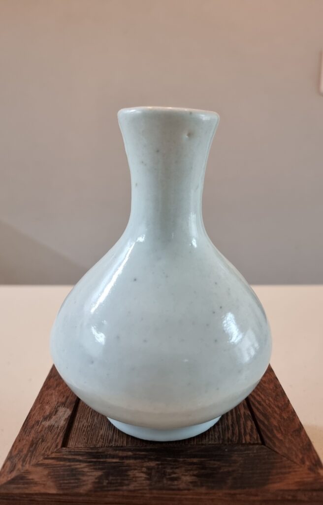 고도갤러리 조선시대 19세기 순백자 간병 조선 19세기 전라도 고창지역에서 만들어진 순백자 도쿠리병입니다 제원 구연부 14.3cm x 구연부4.5cm 로서 도쿠리병으로서 재원이 좋습니다 안쪽까지 유약이 시유가 되어있고 구연부에 검지가 들어가기에 도쿠리병으로 사용하기에 좋은 크기입니다 상태완벽하기에 고도갤러리 추천기물입니다 판매가 32만원